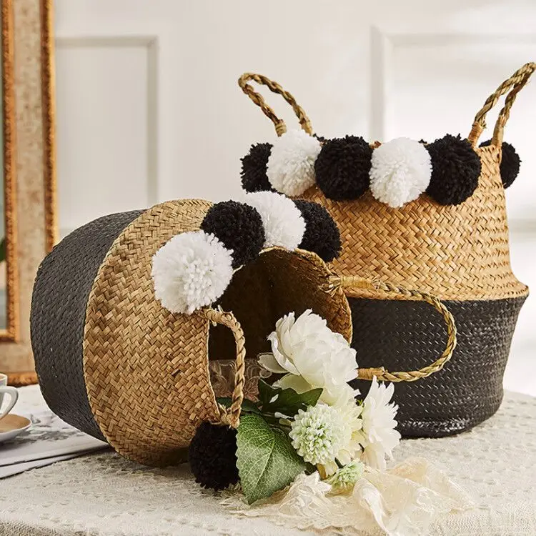 Плетеная бамбуковая корзина соломенная корзина для хранения цветочный горшок Органайзер тканая складная корзина Organizador Panier De Rangement Mimbre Osier