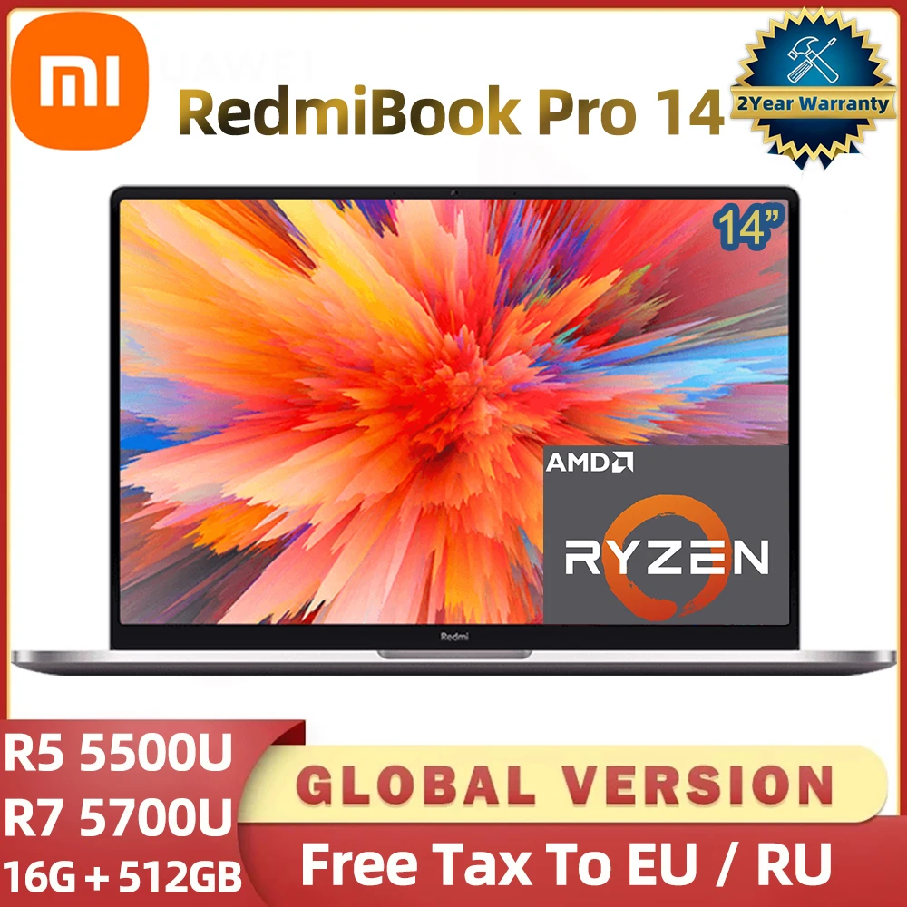 Ноутбук Xiaomi RedmiBook Pro, 14 дюймов, процессор AMD R5 5500UR7 5700U, процессор Ryzen Edition, 16 ГБ, 512 ГБ SSD