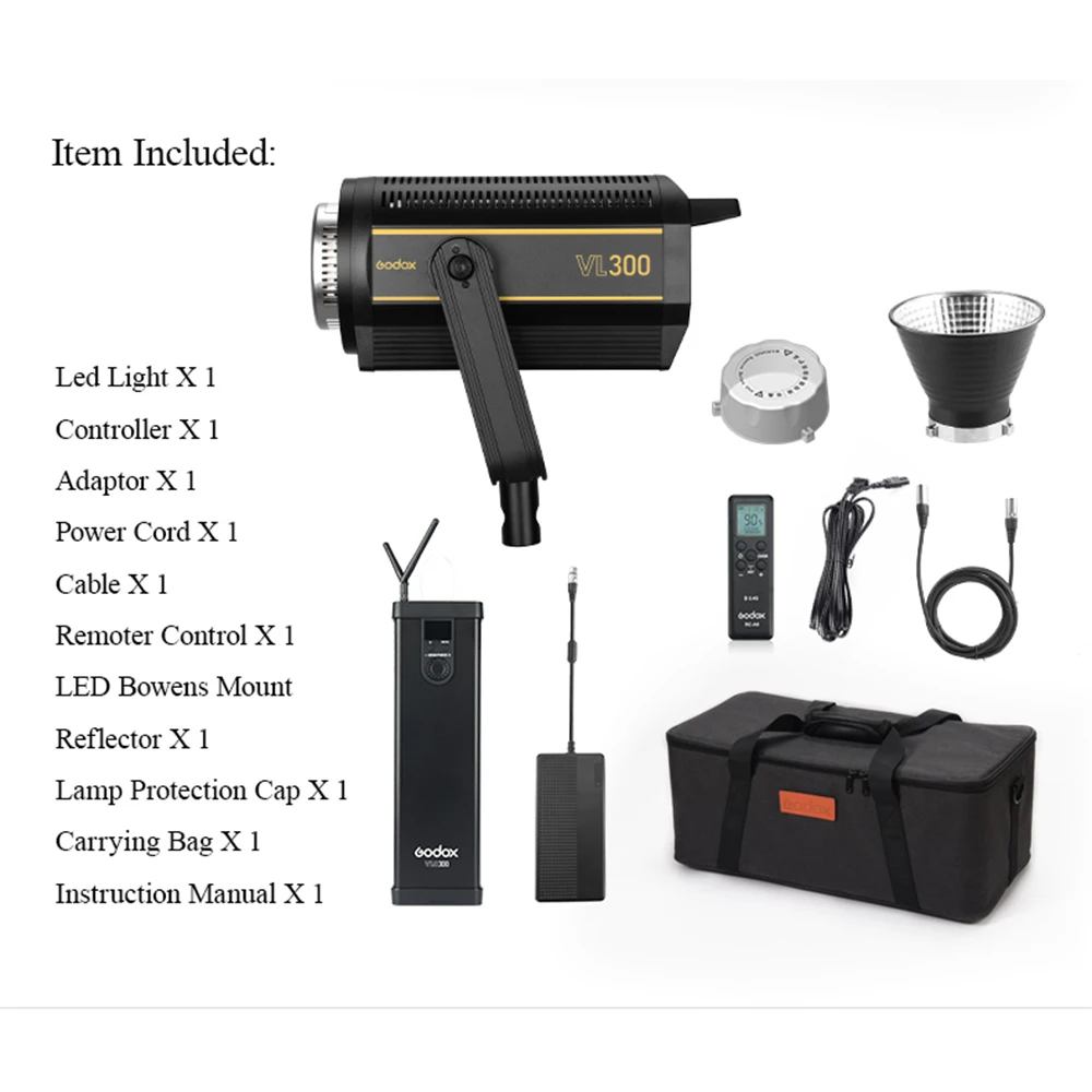 Студийный светильник Godox VL300, VL-300, 300 Вт, 5600K, белый цвет...