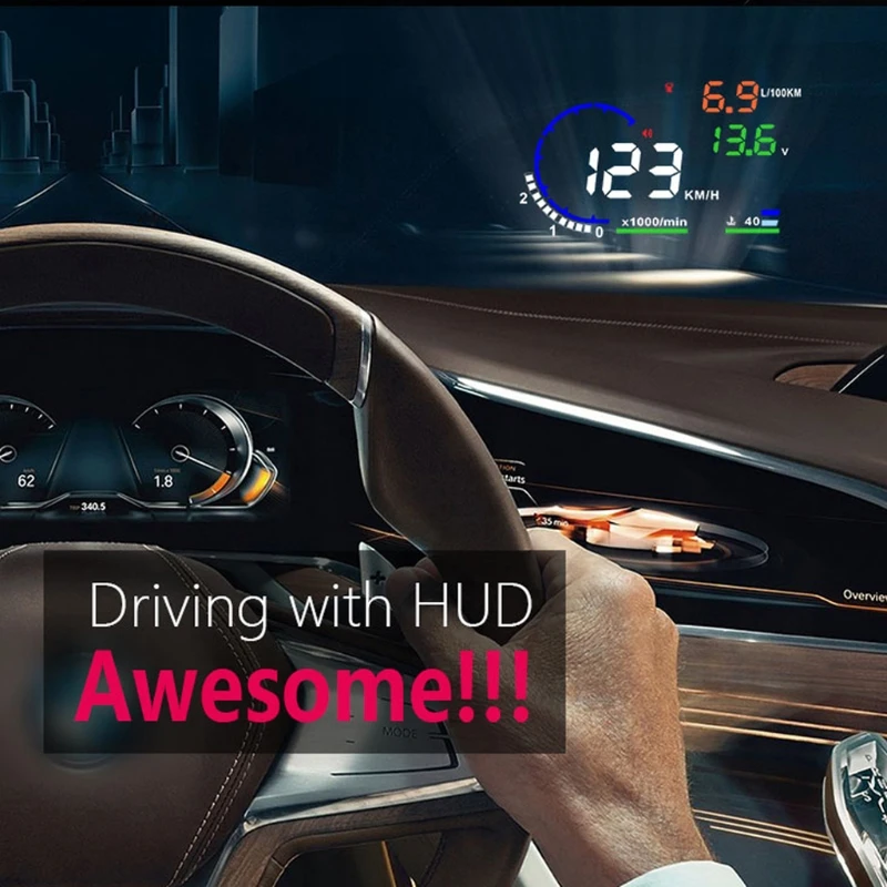 Дисплей на лобовое стекло A8 OBD2 HUD с индикатором оборотов в мину...