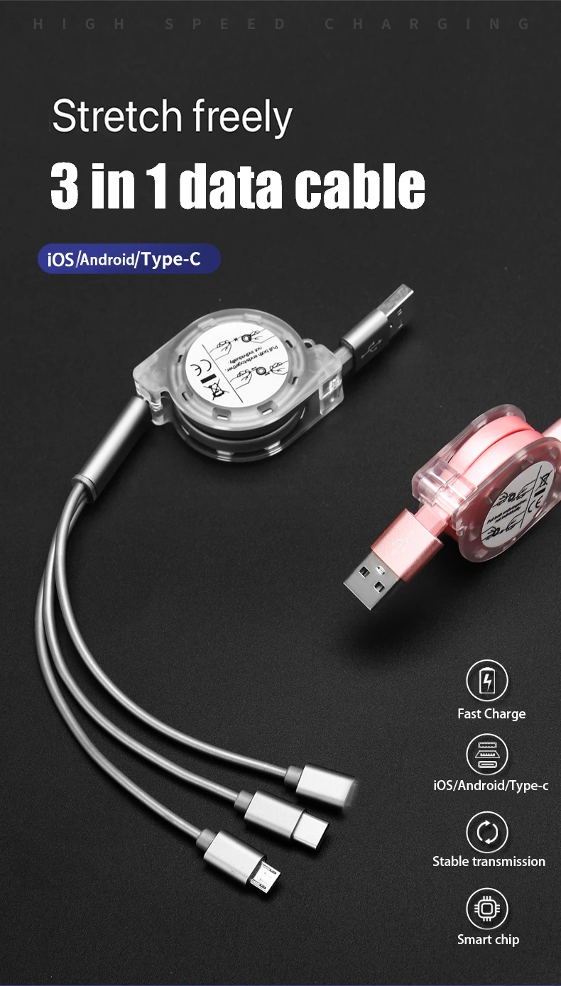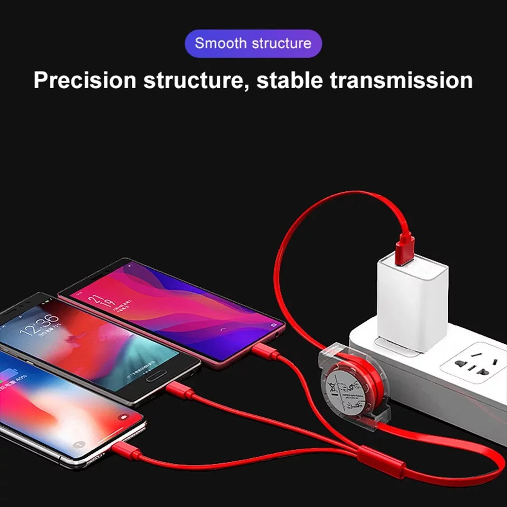 Выдвижной usb-кабель 3 в 1 для быстрой зарядки телефонов huawei type-c, зарядный кабель для samsung oppo micro usb для redmi oneplus lg