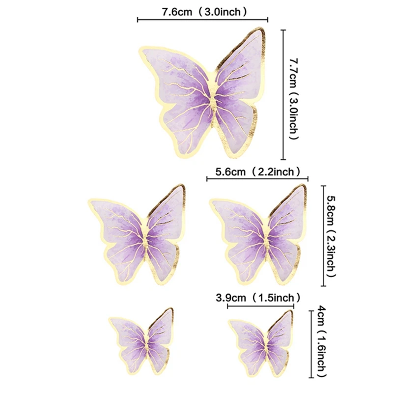 Украшения для торта, 5 шт.компл., разноцветные, золотистые, в виде бабочек