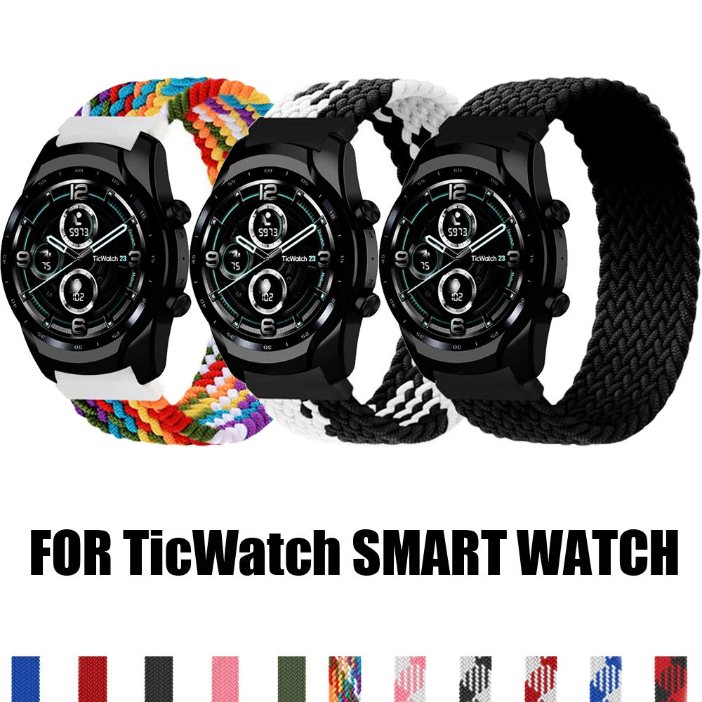 22 мм 20 мм нейлоновый Плетеный ремешок для Ticwatch 3 Pro 2020 GTX E2 S2 Смарт-часы 22 мм браслет Solo Loop ремешок для Ticwatch 2 E C2