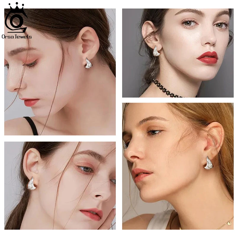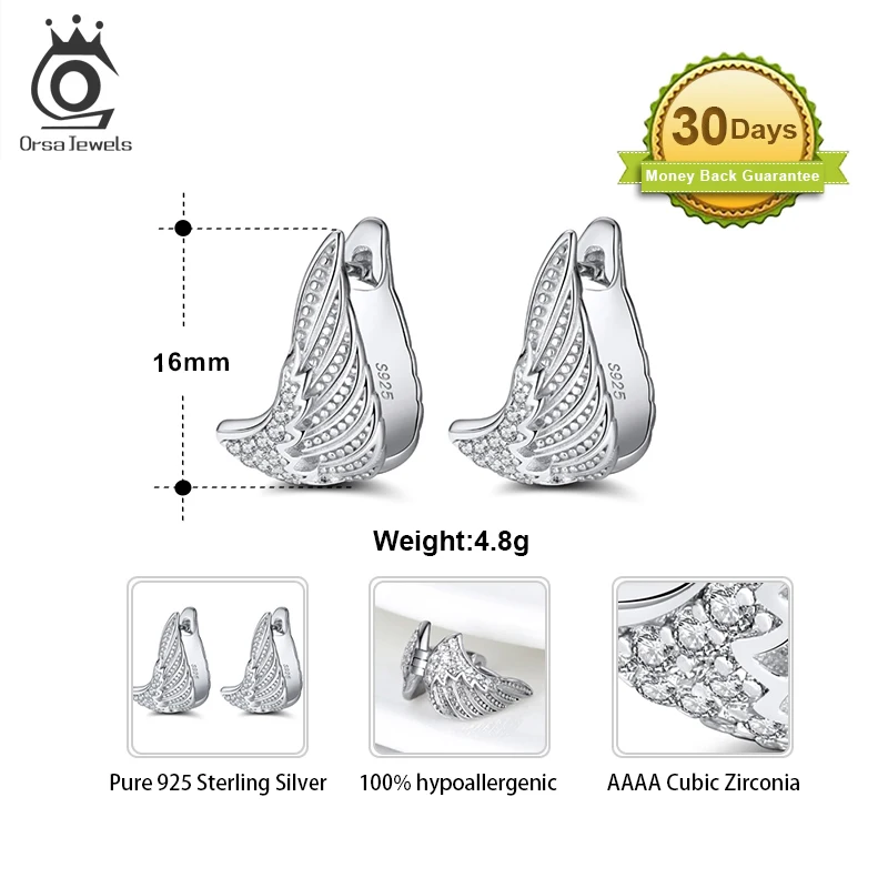 ORSA JEWELS 925 стерлингового серебра серьги-кольца модные Угол Крылья клип серьги с цирконием для женщин, ювелирные изделия для подростков SE341