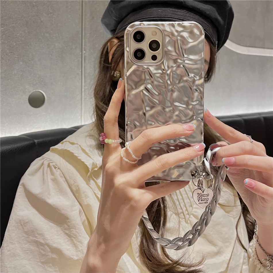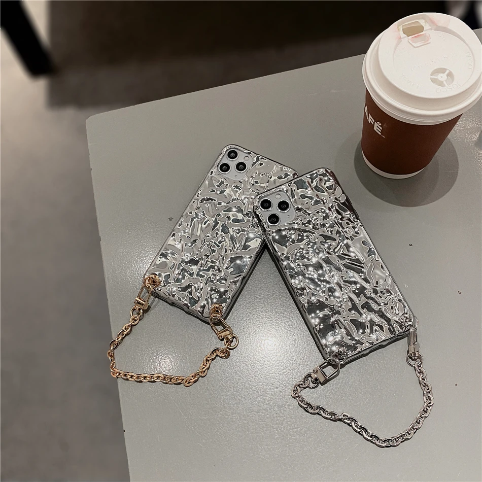 Модный серебристый металлический чехол для iPhone 13 12 11 Pro XS Max XR X 7 8 Plus