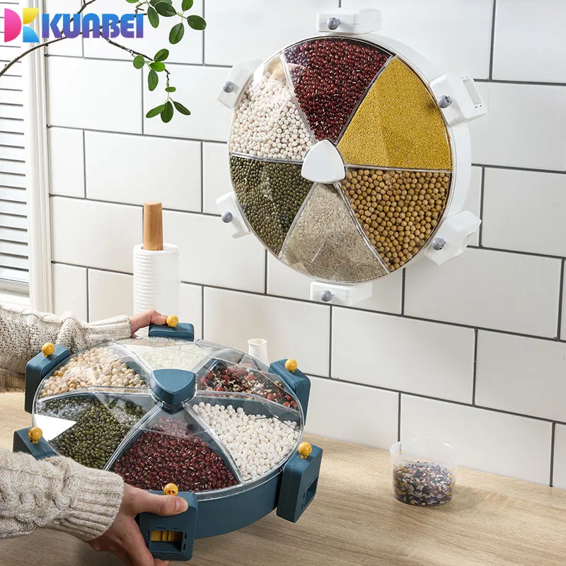 Вращающийся кухонный диспенсер для зерна, сетчатый настенный контей...