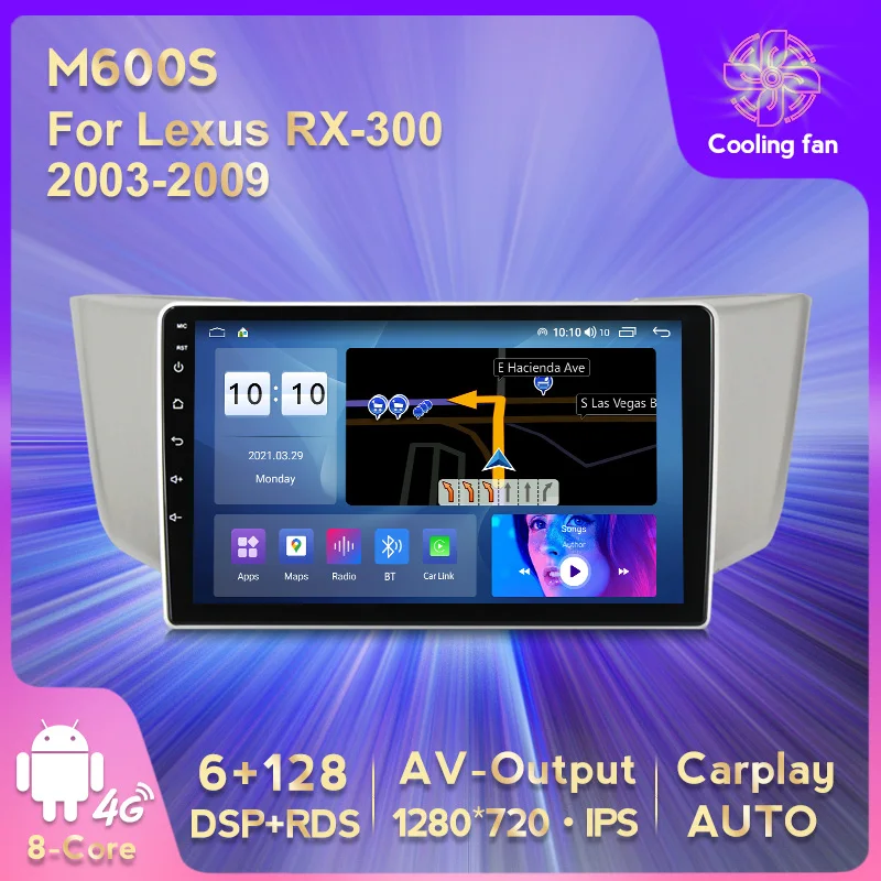 Автомагнитола Carplay + Auto 6 + 128 для Lexus RX330, RX350, RX400H...