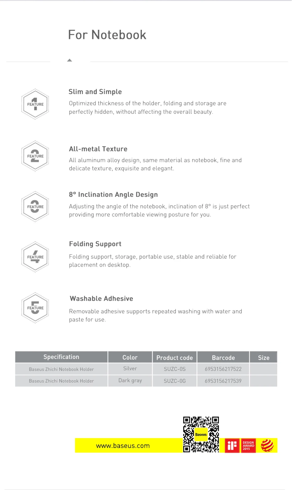 Подставка для ноутбука Baseus, регулируемая, алюминиевая, 111317 дю...