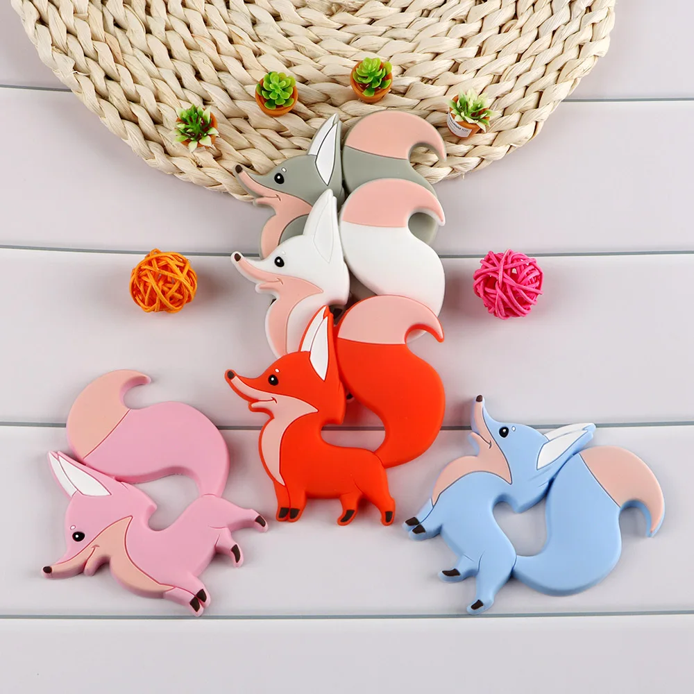 Kovict 1 шт., Прорезыватель для зубов для малышей с изображением лисы, BPA, Бесплатная Пищевая силиконовая подвеска, DIY, аксессуары для соски, Детские молярные игрушки