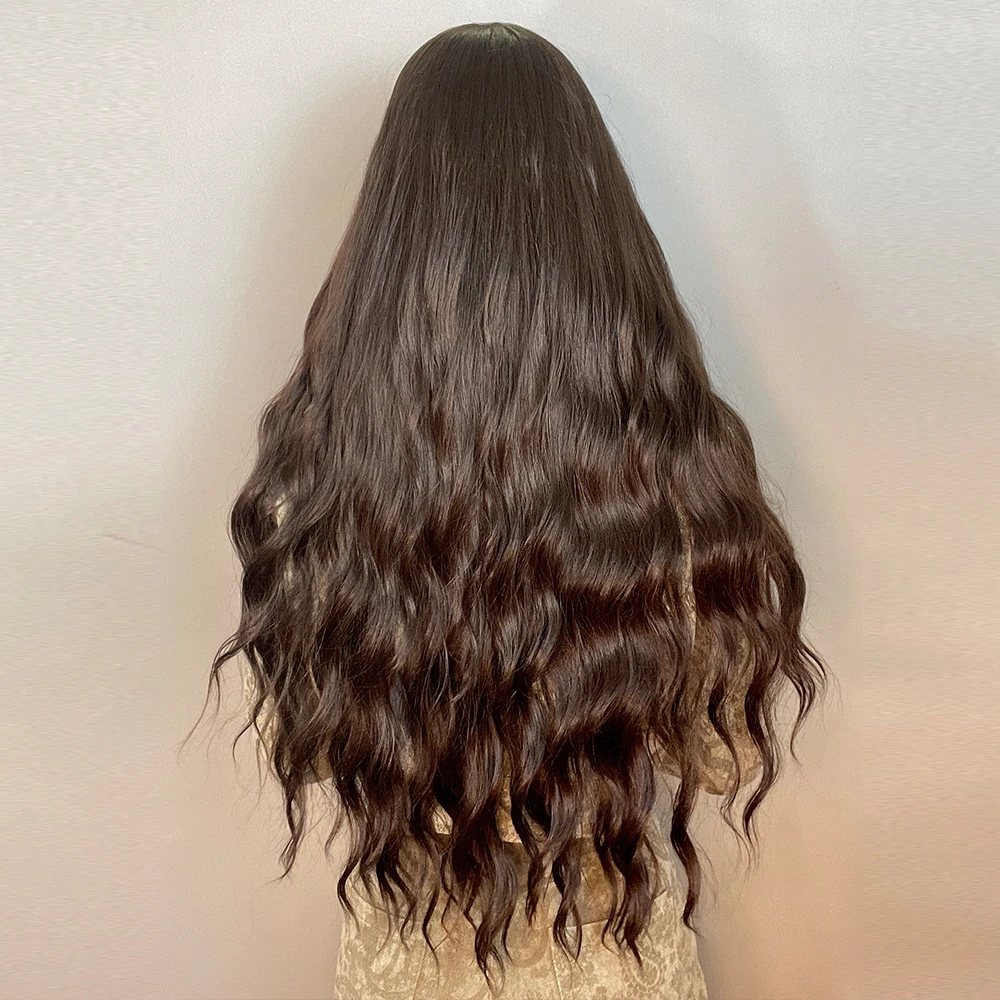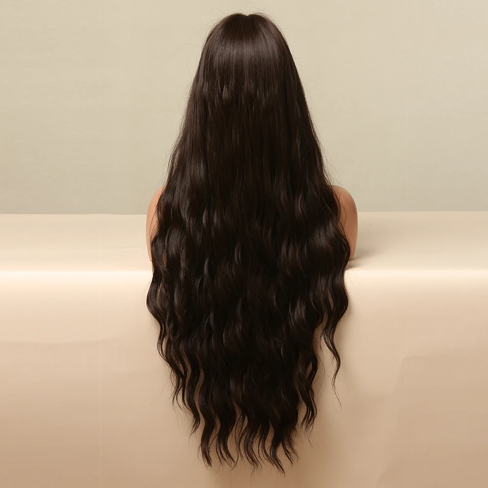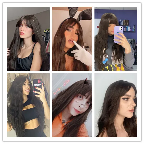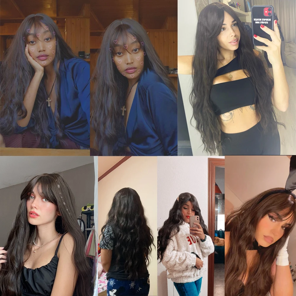 Парик LOUIS FERRE для женщин, Синтетические длинные вьющиеся волосы шоколадно-коричневого цвета, с челкой, термостойкий, для повседневвечерние, Косплея