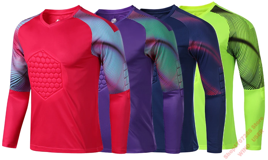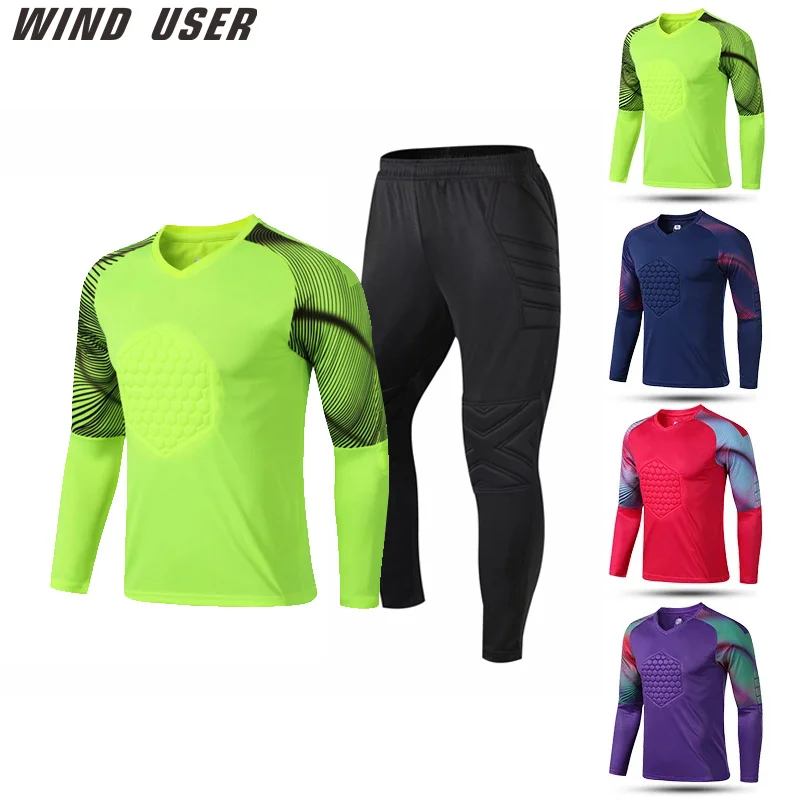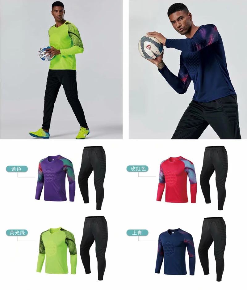 Мужская футбольная форма вратаря, защитная губчатая форма с длинным рукавом, тренировочная Футбольная форма вратаря, футболка и штаны