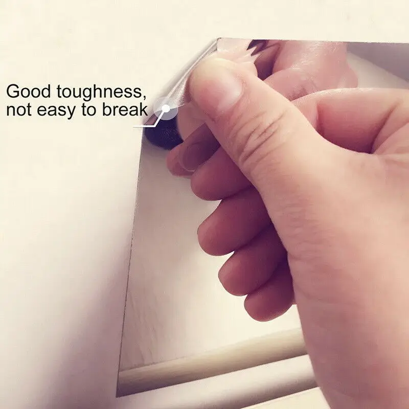 Характеристики:Материал: акрилРазмер: 0.1mm15*15 см (6*6 дюймов)Цвет: как на фотографииОсобенности:Прозрачный и отражающий: Просто снимите прозрачную пленку с лицевой стороны «Зеркало», и вы получите блестящее декоративное зеркало без стекла, обратите внимание, что это не настоящее зеркалоСамоклеющиеся зеркальные плитки: с липкой самоклеющейся задней частью, снимите белую защитную пленку и Наклейте зеркальные листы на любую чистую гладкую поверхностьУльтра тонкий и гибкий: изготовлен из акрилового материала, акриловое зеркало может быть свободно согнуто, не легко сломать, безопаснее, чем обычное стеклянное зеркалоМногократное использование: можно использовать в качестве украшения интерьера, украшения, делает внутреннее пространство более просторным благодаря зеркальному отражению, а не для использования в качестве Реалистичного mirro