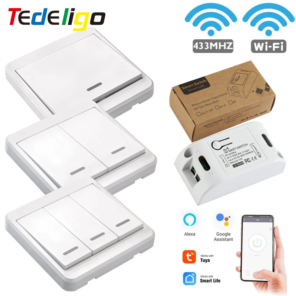 Tuya Smart переключатель Wi-Fi светильник триггерный релейный модуль Беспроводной приложение Дистанционное Управление 433 МГц кнопочный переключатель стены ламината таймер совместим с Google Home, Alexa