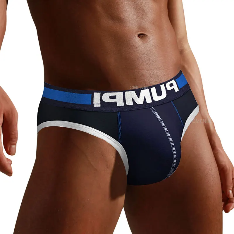 Мужские трусы брифы из хлопка, темно-синие удобные трусы бикини, сексуальное нижнее белье для мужчин, гей-трусы 2019