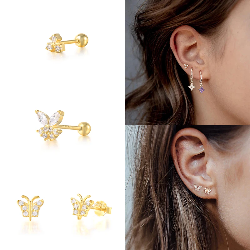 Aide pendientes plata 925, серьги для пирсинга, 925 пробы, серебро, Бабочка, молния, змея, кисточка, цепочка, серьги-гвоздики, изящные украшения