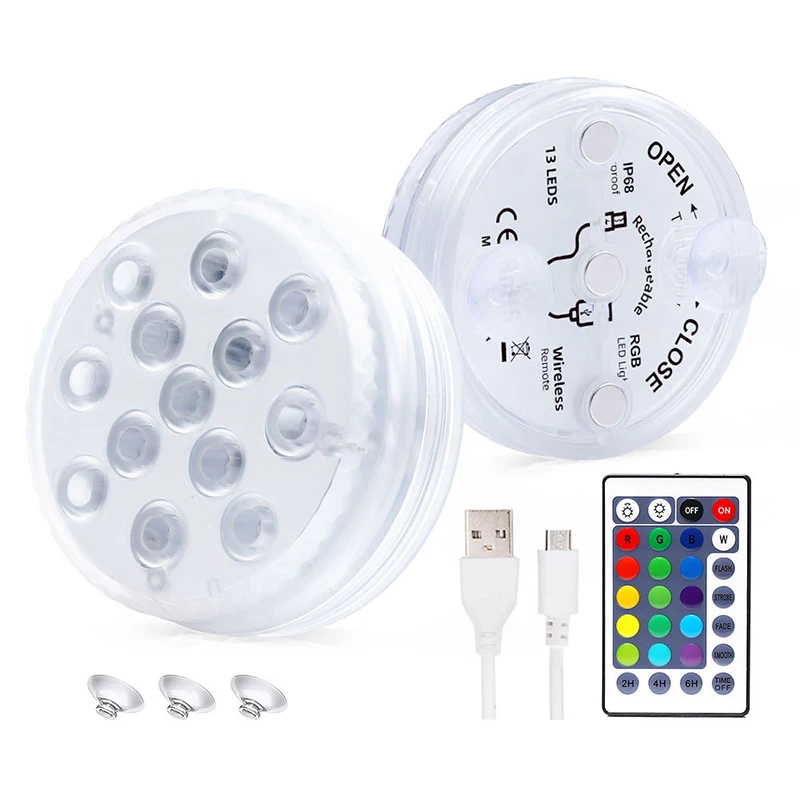 Погружной светильник с USB-зарядкой для бассейна, светодиодный ночсветильник RGB с присоской, уличная садовая подводная лампа с радиоуправлением