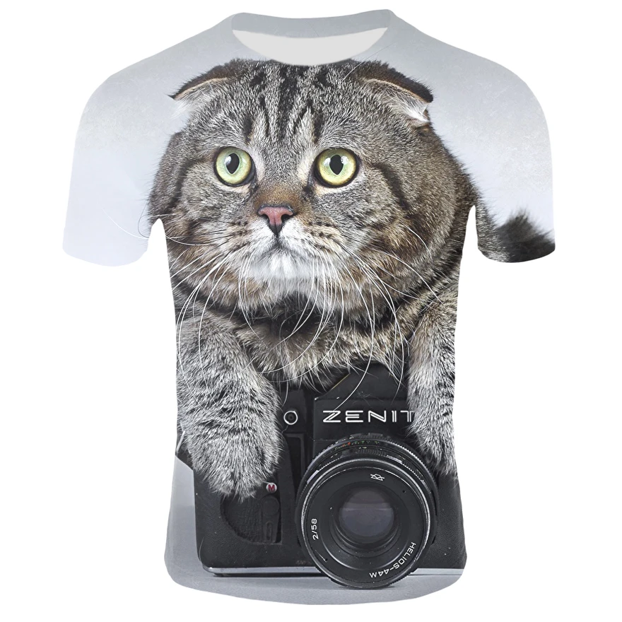 Футболка с 3D принтом, футболка с принтом, футболка для мужчин и женщин, мужская и женская футболка с мультяшным котом, забавным котом, милым котом
