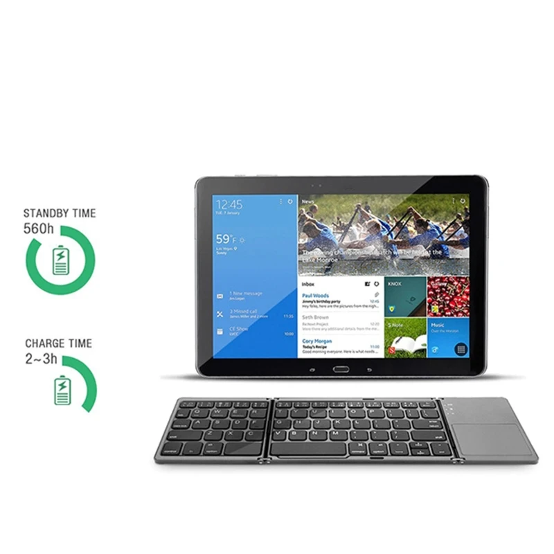 Аккумуляторная батарея-пользователи могут наслаждаться до 48 часов написания на одной зарядке. Беспроводная складная bluetooth-клавиатура имеет перезаряжаемый литий-ионный аккумулятор. Время работы в режиме ожидания до 560 часов.