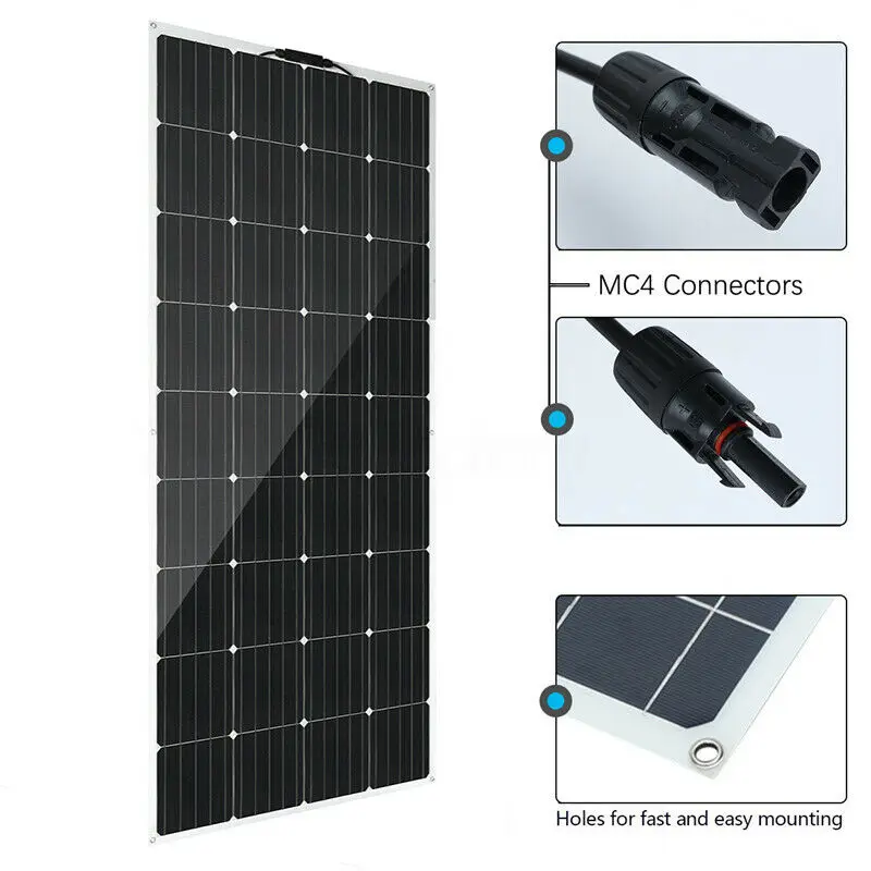 Особенности:Высокая эффективность, коэффициент конверсии 21-23%,Гибкий, подходит для поверхностного монтажа.Светильник легко устанавливается и поддерживается.Широкий диапазон адаптации: Зарядка автомобилей, лодок, крыш, на открытом воздухе, гор, лугов и т. Д.Характеристики:Мощность: 500 ВтДлина провода: 0,9 мВыходное напряжение: 18 вРазмер: 1180*540*3 ммСтепень водонепроницаемости: IP65Материал: монокристаллический кремнийТемпературный коэффициент Voc: -0.33% °CТемпературный коэффициент мощности: -0.23% °CТемпературный коэффициент тока Isc: ± 0.05% °CNOCT (Номинальная рабочая температура ячейки): 45 °C (± °C)Применение: автомобили, лодки, крыши, на открытом воздухе, горы, луга и т. Д.Посылка:1X 500 Вт солнечная панель