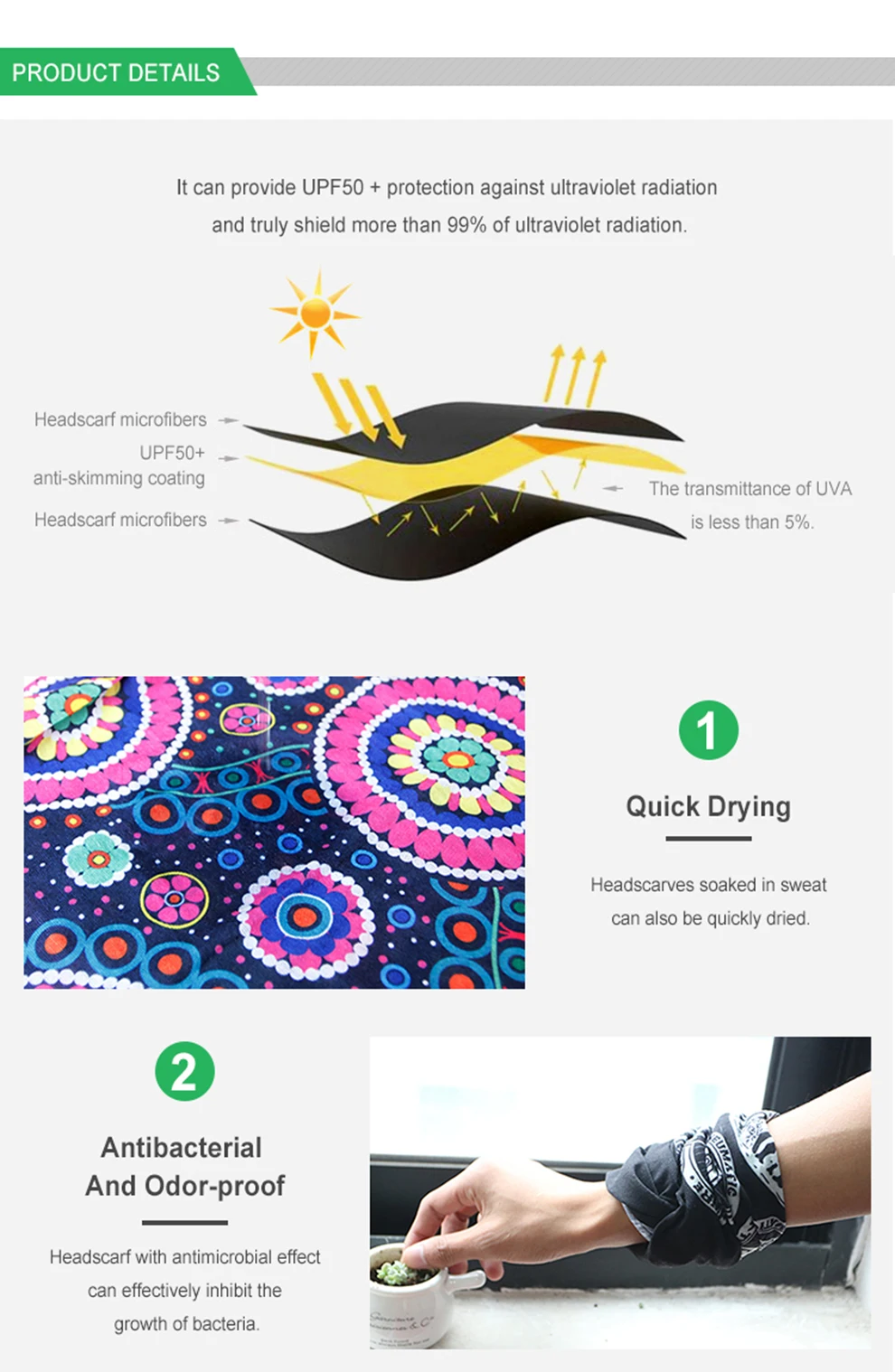 FunctionalQuick dry, anti-uv protection, windproof, sand control