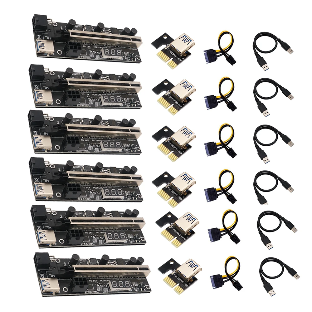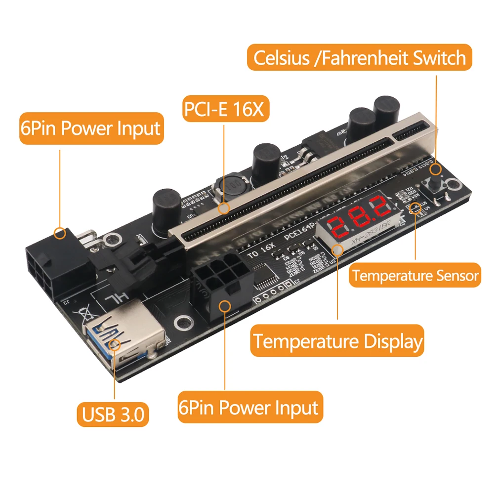 PCIE Райзер 1x до 16x Экспресс-удлинитель 6-контактный Райзер адаптер карта с датчиком температуры для Биткоин графический процессор для майнинга видеокарты