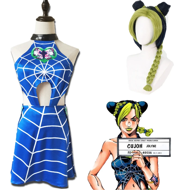 Костюм для косплея Джоджо из аниме Невероятные приключения, юбка Жоли кудзё, полный комплект из зеленых париков, костюмы на Хэллоуин, карнавал вечерние ринку
