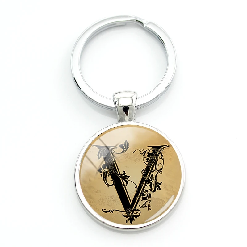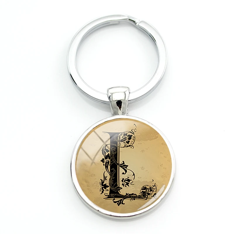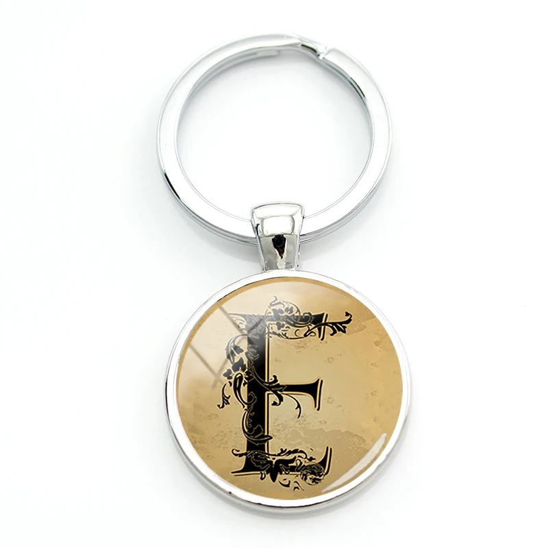 Винтажный брелок TAFREE с 26 английскими буквами, романтические слова признания, кольца для ключей, Стеклянные Кабошоны, украшение для влюбленных