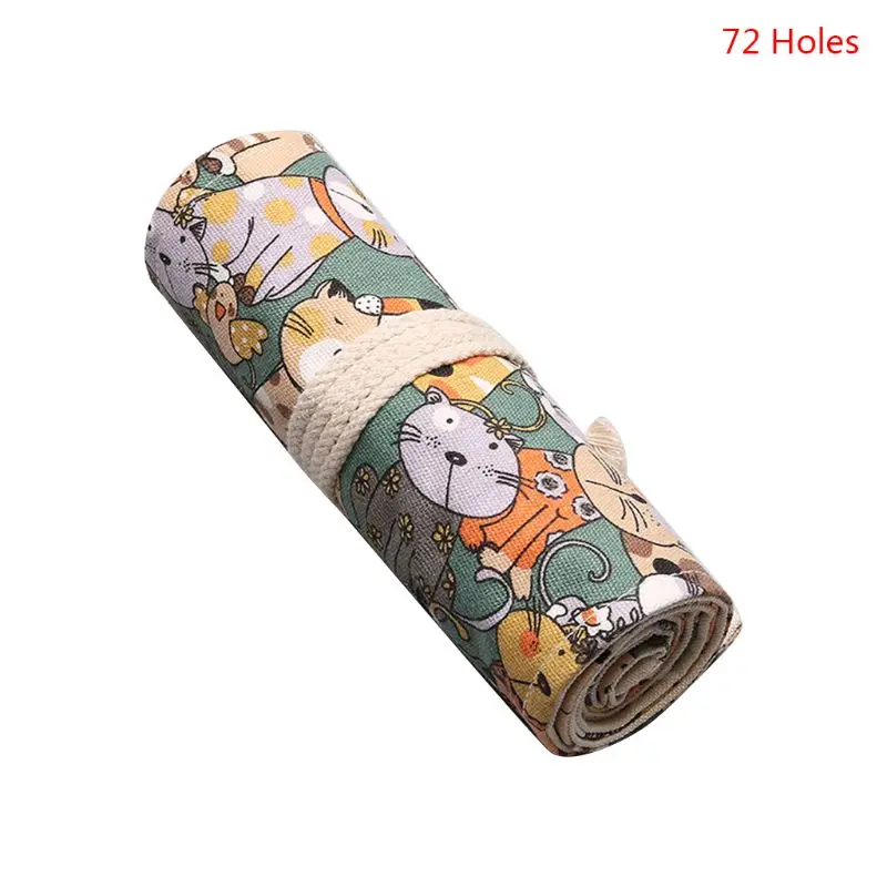 1224364872 отверстия холст школьный пенал Чехол Roll Up Карандаш Че...