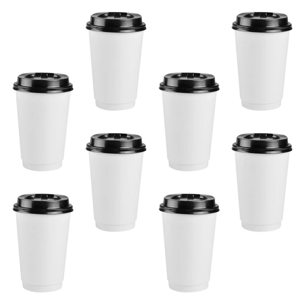 Одноразовые кофейные стаканчики, 50 шт., двухслойный бумажный стаканчик с крышкой (8 унций, 280 мл)