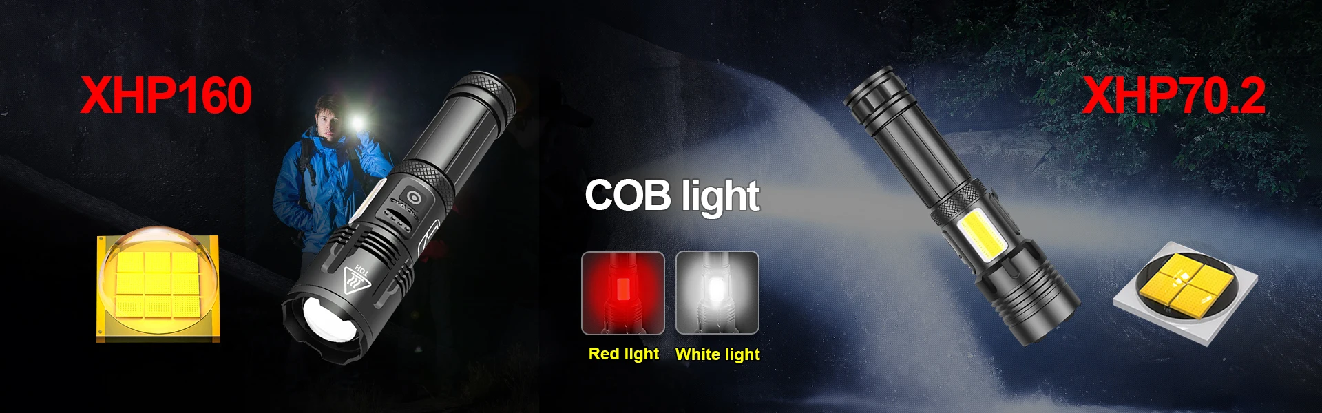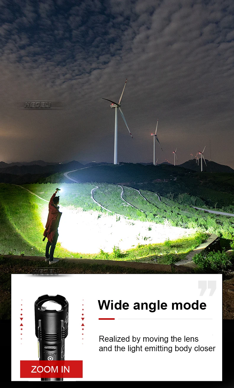2021 Новый XHP160 + COB супер фонарик♦XHP160 с высоким уровнем яркости фитиль, 9-сердечник фитиль упаковки и выпуклая линза, всесторонне улучшите производительность освещения♦Дизайн лампы COB, белый светильник, красный светильник, подходит для многих случаев.♦Выдвижной зум, яркий прожектор, мощная дальняя мощность, широкий диапазон прожекторов, дальние расстояния прожектора, дальность съемки до 1200 метров.♦Использование аккумулятора 18650 (3600 мАч) или 26650 (6800 мАч). Внутренняя проводка использует высокоэффективную схему повышения для максимального использования аккумулятора. Он длиннее и прочнее обычных батарей.♦USB вход и выход, заряженный дисплей, может использоваться в качестве фонарика и аварийного источника питания, двойного назначения.♦Водонепроницаемый уровень может достигать IPX6, который может легко справиться с суровой внешней средой ночью.♦Хвост используется для размещения веревки. Веревка изготовлена из конопляного материала, который удобен, прочен и не легко сломать. Во время покупки, мы дадим вам веревку в подарок.