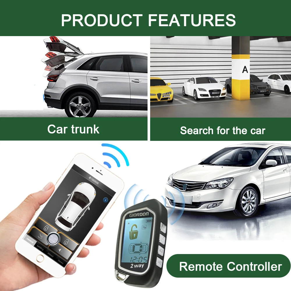 Двухсторонняя Автомобильная сигнализация, большой дисплей ЖК-пейджер, автоматический запуск, остановка, турботаймер, режим ударавибрации, универсальный 12 В постоянного тока