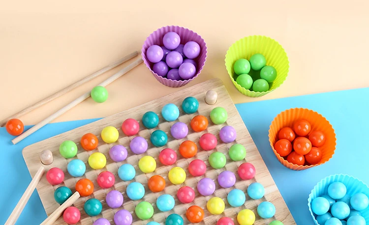 Деревянная игрушка-зажим мяч, бисер для игр, Монтессори, развивающа...