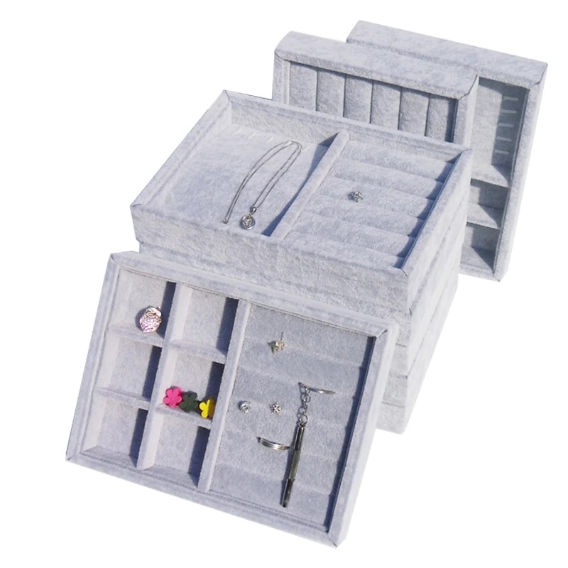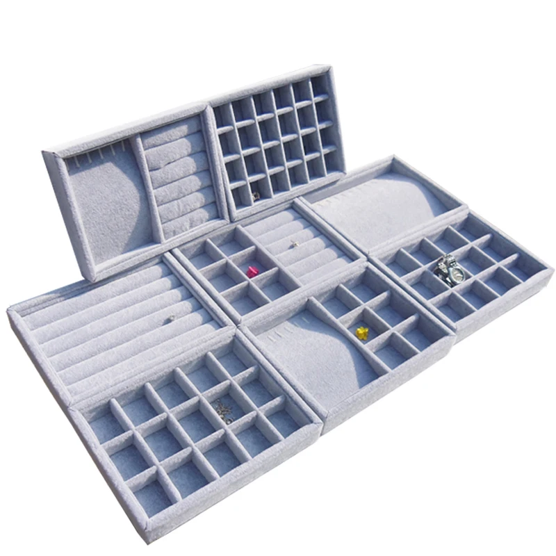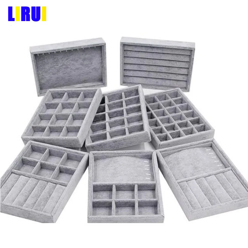 Шкатулка для ювелирных изделий ручной работы сделай сам, ящик, органайзер для хранения, серый мягкий бархат, поднос для ювелирных изделий, серег, цепочек, подвесок, браслетов, 9 вариантов