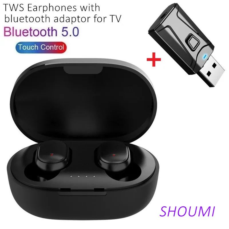 Беспроводные наушники TWS, спортивные водонепроницаемые Bluetooth наушники-вкладыши с USB-адаптером для телевизора, спортивные наушники с микрофоном и сенсорным управлением, TWS гарнитура A6