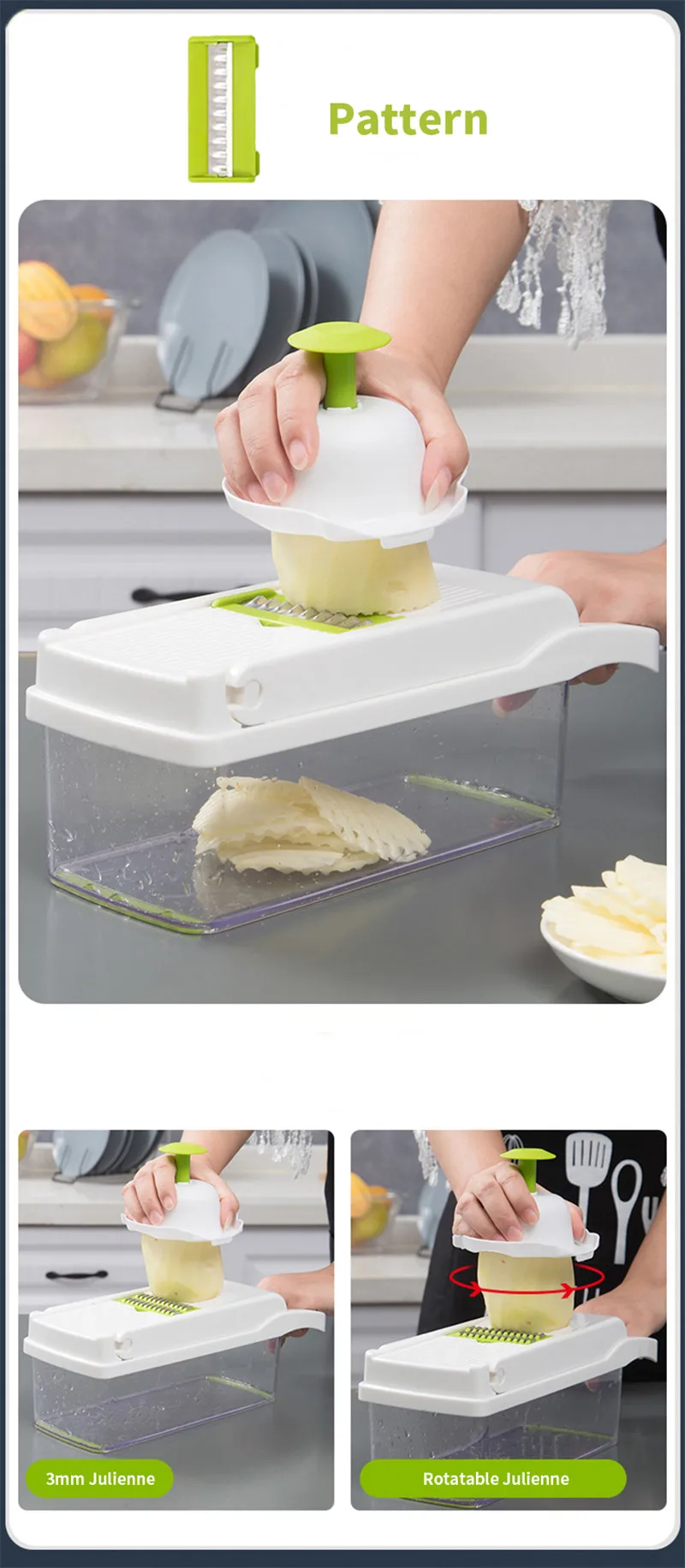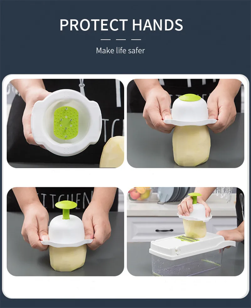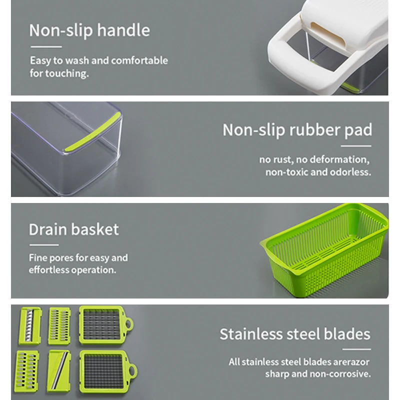 С помощью этого кухонного набора для резки вы можете сэкономить 70% времени, попрощайтесь с водянистыми глазами, когда нарезаете лук; И поможет вам готовить еду более элегантно.