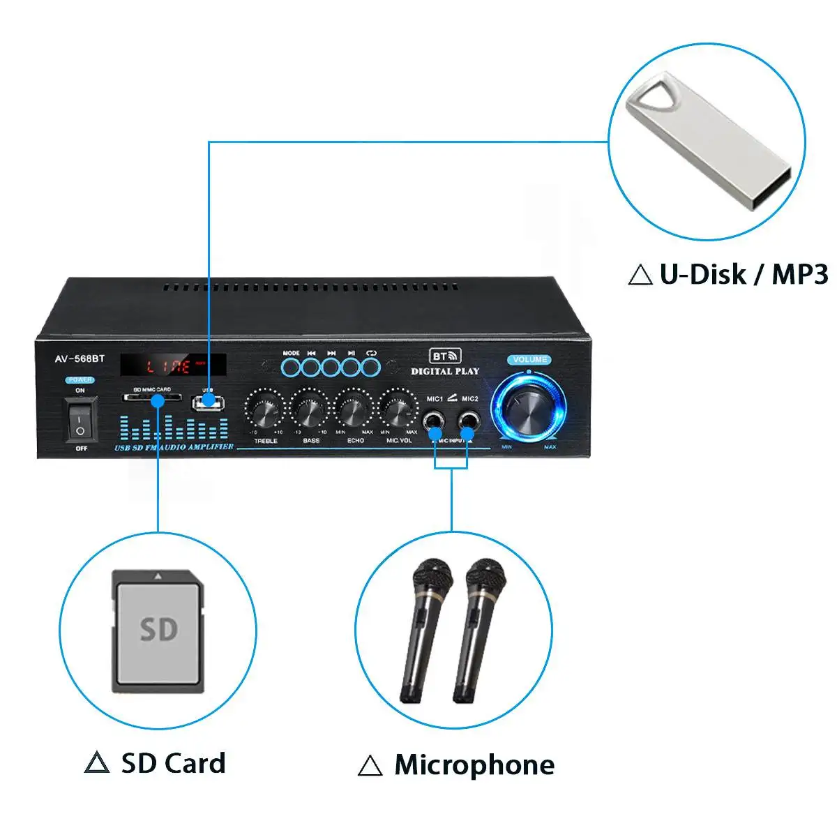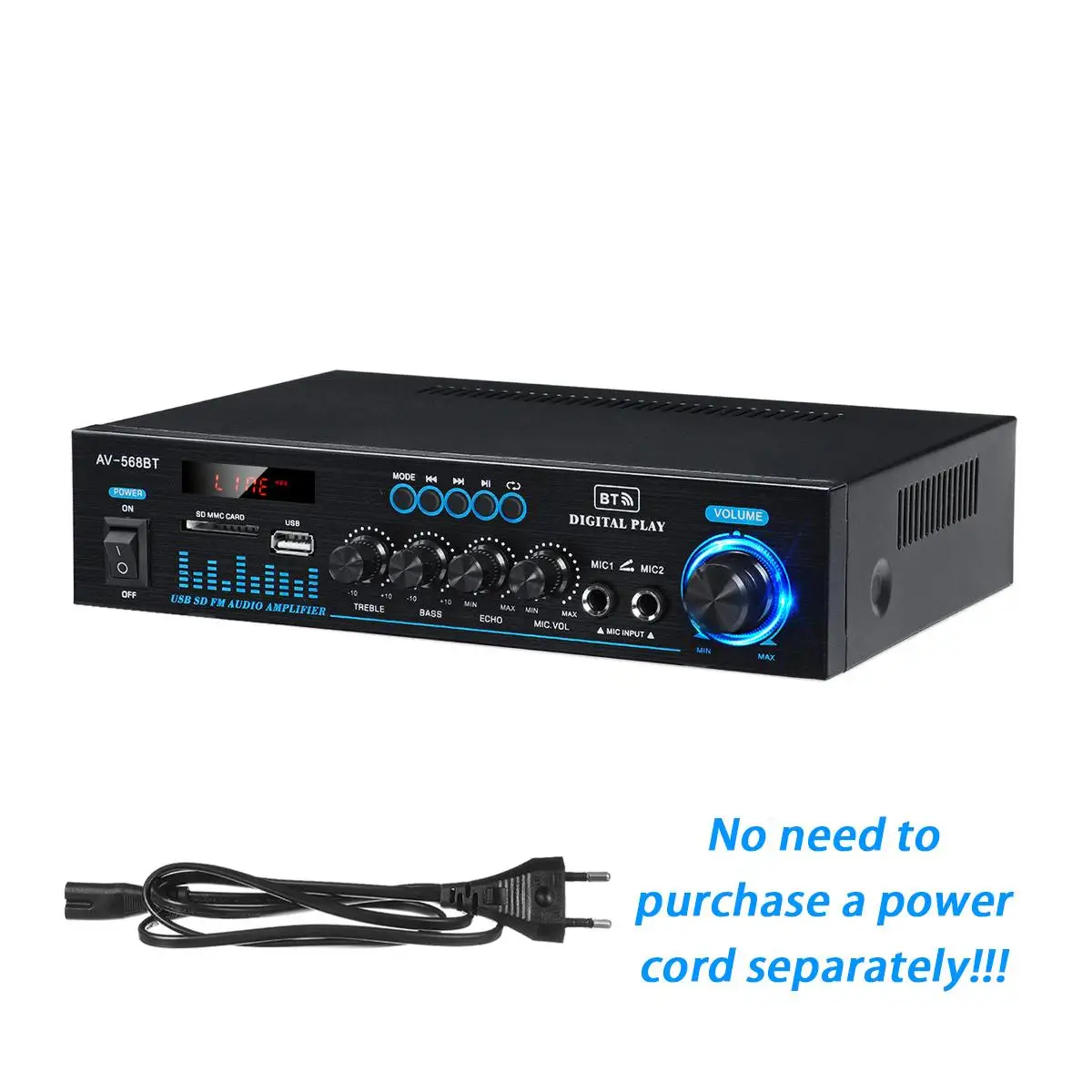 568BT 1000 Вт bluetooth 5,0 12V220V110V, Hi-Fi, цифровой усилитель стерео светодиодный бас класса D аудио усилитель сабвуфер USB Aux FM