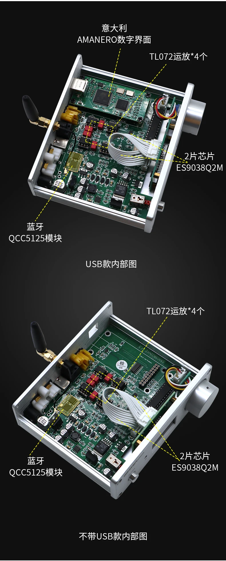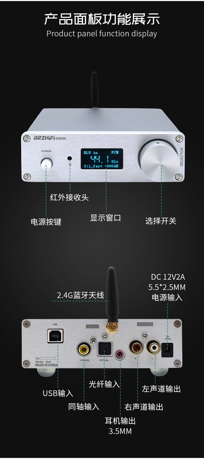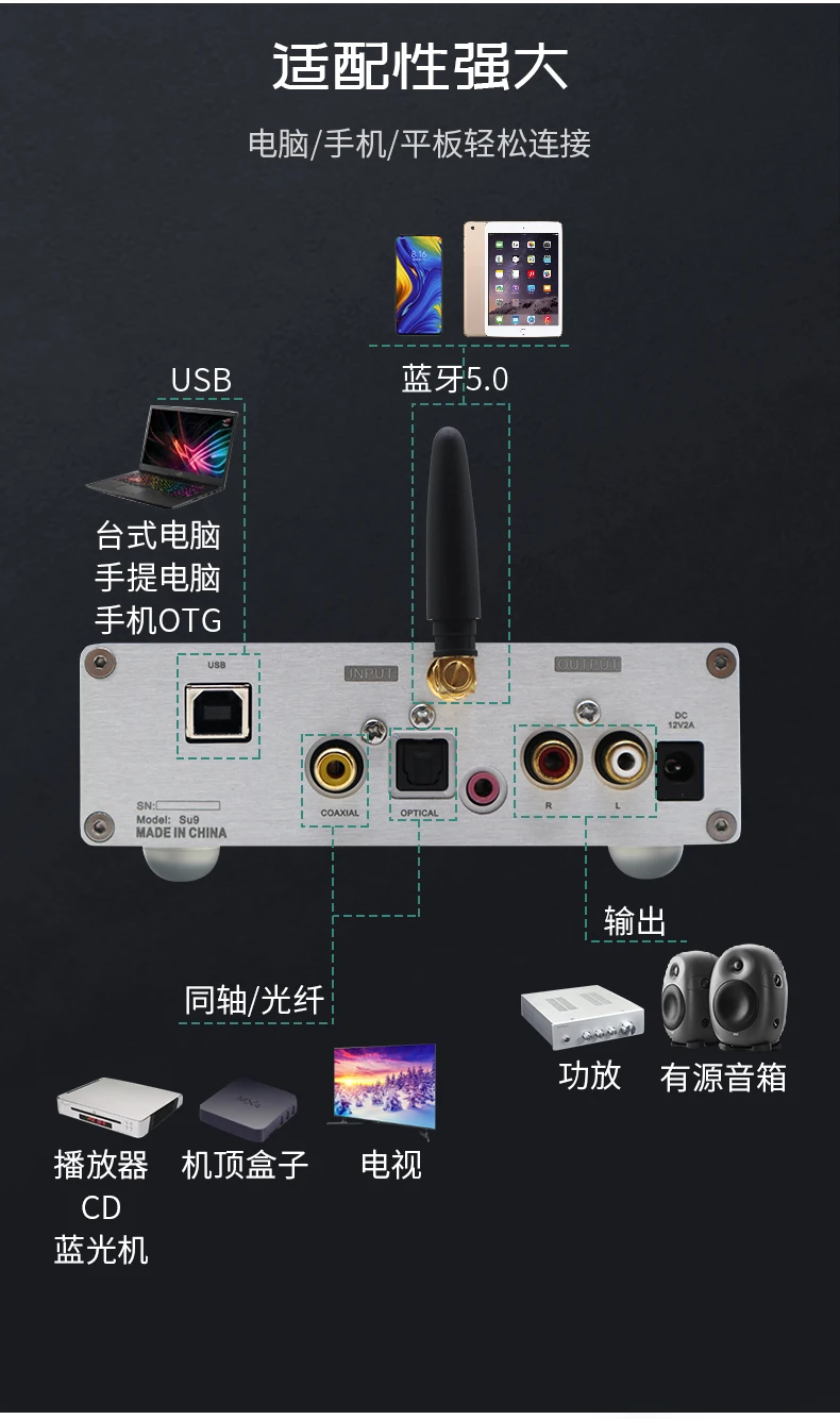 Обратите внимание, что в этом продукте используются две чипы ES9038Q2M, которые отличаются от общих чипов ES9038Q2M. Эффективность анализа, плотность и разделение будут значительно улучшены. Конечно, стоимость также дороже. Bluetooth также был обновлен до новейшего bluetooth-решения Qualcomm QCC5125, точность лучше, чем CSR8675, поддержка APTX-HD! + LDACС XMOS или прямой гравировкой, итальянское цифровое декодирование Amanero, непосредственно жесткое декодирование DSD64-DSD512! Описание аксессуаров для машины: 1 адаптер 12V2A, 1 пульт дистанционного управления, 1 USB (только для версии USB)Технические характеристики машины: 130*42*108 без клеммной ручкиСсылка на Драйв: https://amanero.com/drivers.htmРуководство пользователя: ссылка: https://pan.baidu.com/s/1qYC_I1ta5UWAkeVieTN99QКод извлечения: awuq "Руководство по установке драйвера и установке подножек"Ссылка: https://pan.baidu.com/s/1uUn-AAqjN9kWxfEEx-_zzwКод извлечения: 2333 ЦАП подходит для дома и автомобиля