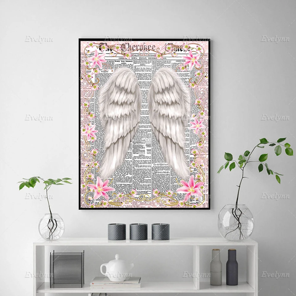 Картина с изображением крыльев Ангела, абстрактная, с изображением розовых цветов