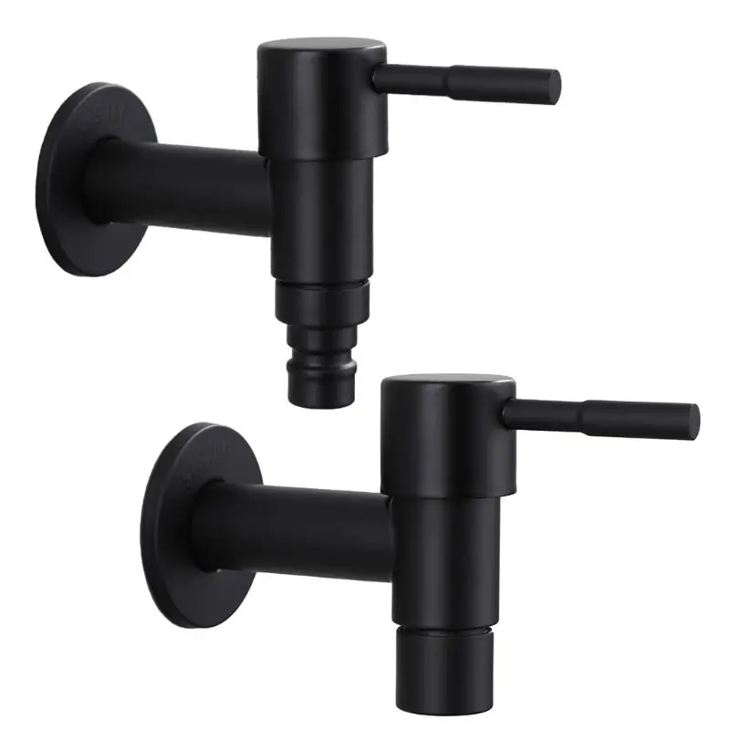 Смеситель из нержавеющей стали, настенный кран для стиральной машины, черный цвет, для сада, ванной комнаты