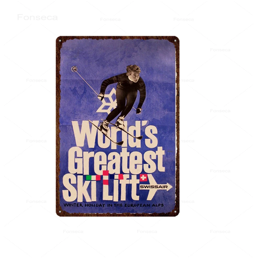 Металлические жестяные знаки для катания на лыжах, пейзаж Исландии, винтажный настенный знак, декор для бара, гаража, пещера, жестяная картина, потертая пластина