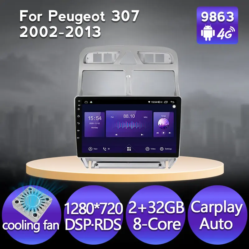 Автомобильный мультимедийный плеер Mekede Octa Core 6 ГБ + 128 ГБ IPS Android 11 для Peugeot 307 1 2001 - 2008 4G LTE DSP Carplay Вентилятор охлаждения SWC