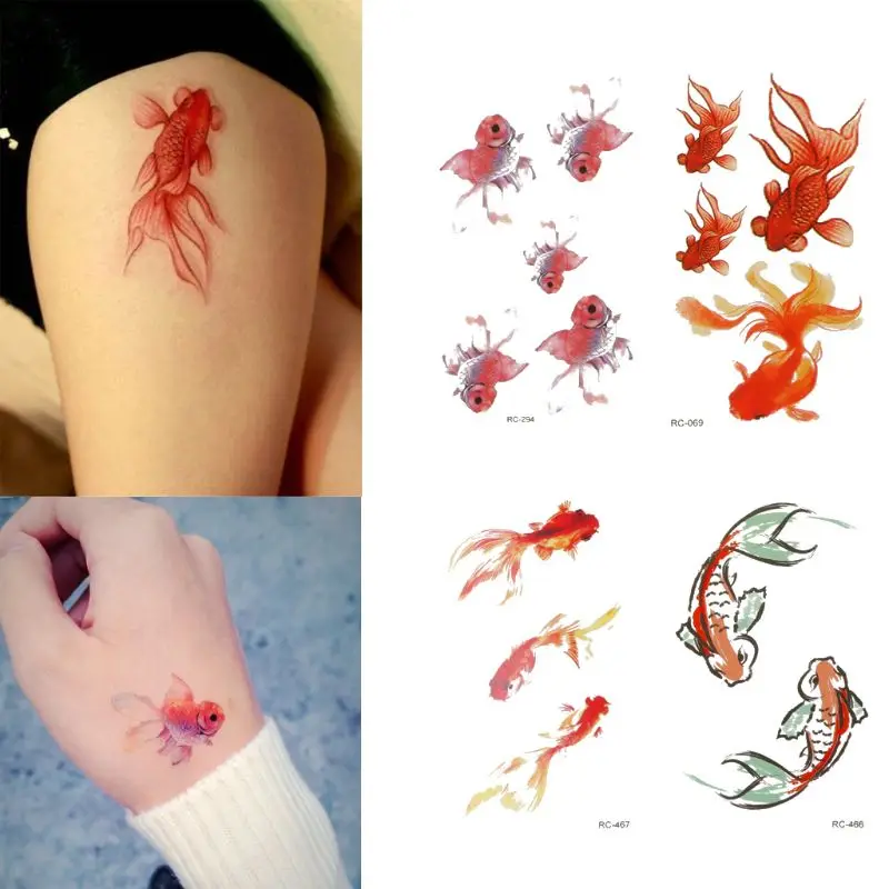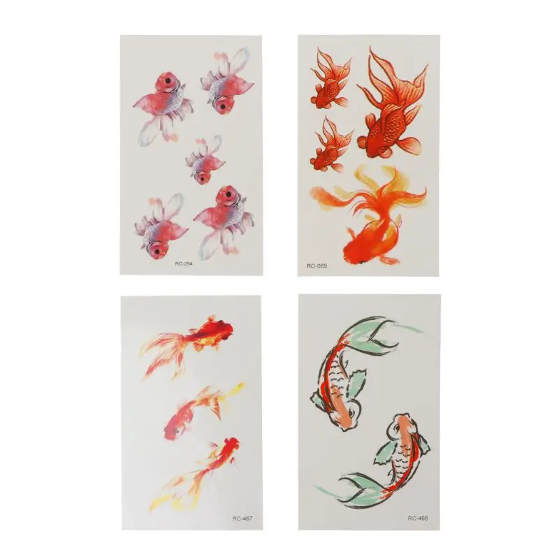 Наклейки с татуировками в виде золотой рыбки, 10 листов