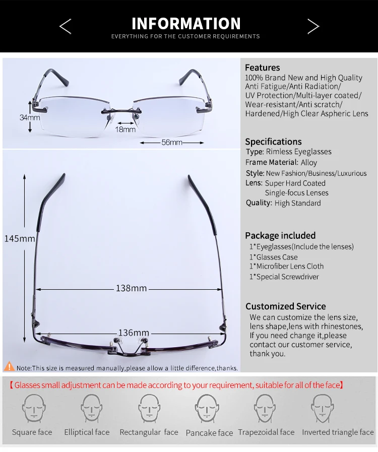 Изготовленный На Заказ титановый рецепт очки без оправы градусов ас...