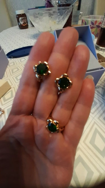 Это красота, качество, дизайн, ровный металл, красота камней, все не расскажешь! В реале, комплект ещё красивей, фотографии не передают красоту набора. Сережечки годятся на любые мочки. Спасибо Вам огромное продавец за Ваш труд, здоровья Вам и благополучия!