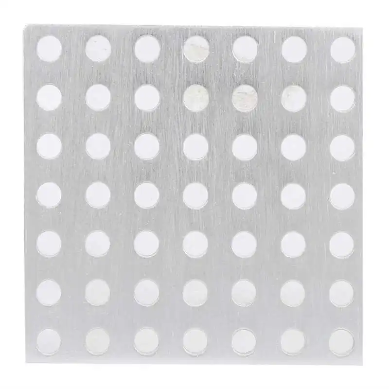Характеристика: Спецификация: Тип изделия: алюминиевая решетка Материал: алюминийМодель продукта: 3116-0088-0232Характеристики: 7x7 отверстий Размер: прибл. 56x5 6 мм/2.2x2.2in. Посылка: