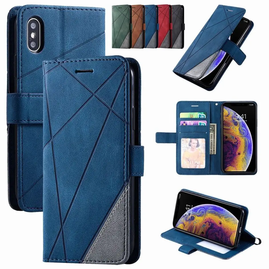 Contrast Color Leather Magnet Phone Case Man Lady Cover Holster A505