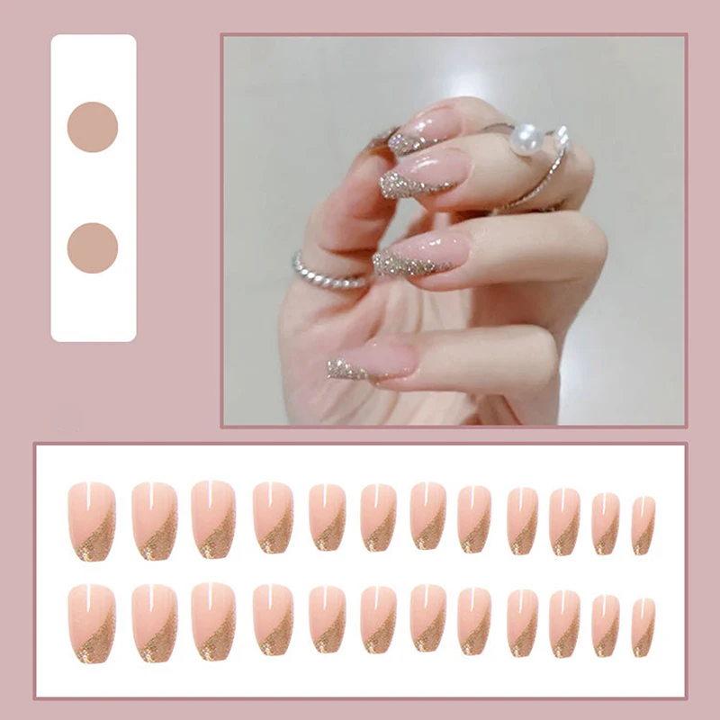 Набор из 24 штук, чистый, темно-серая одежда с длинным рукавом; Из модного маникюра, маникюрный набор накладных ногтей "Экономия времени носимых накладных ногтей: