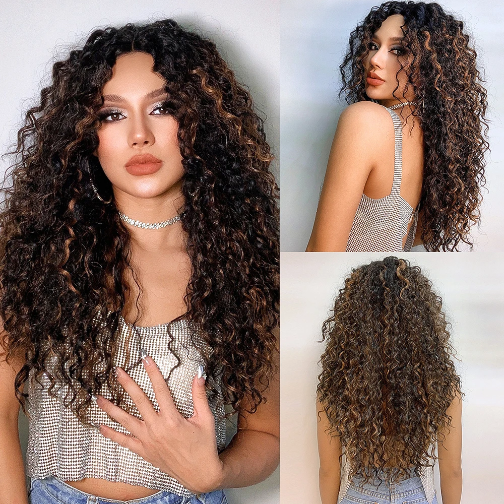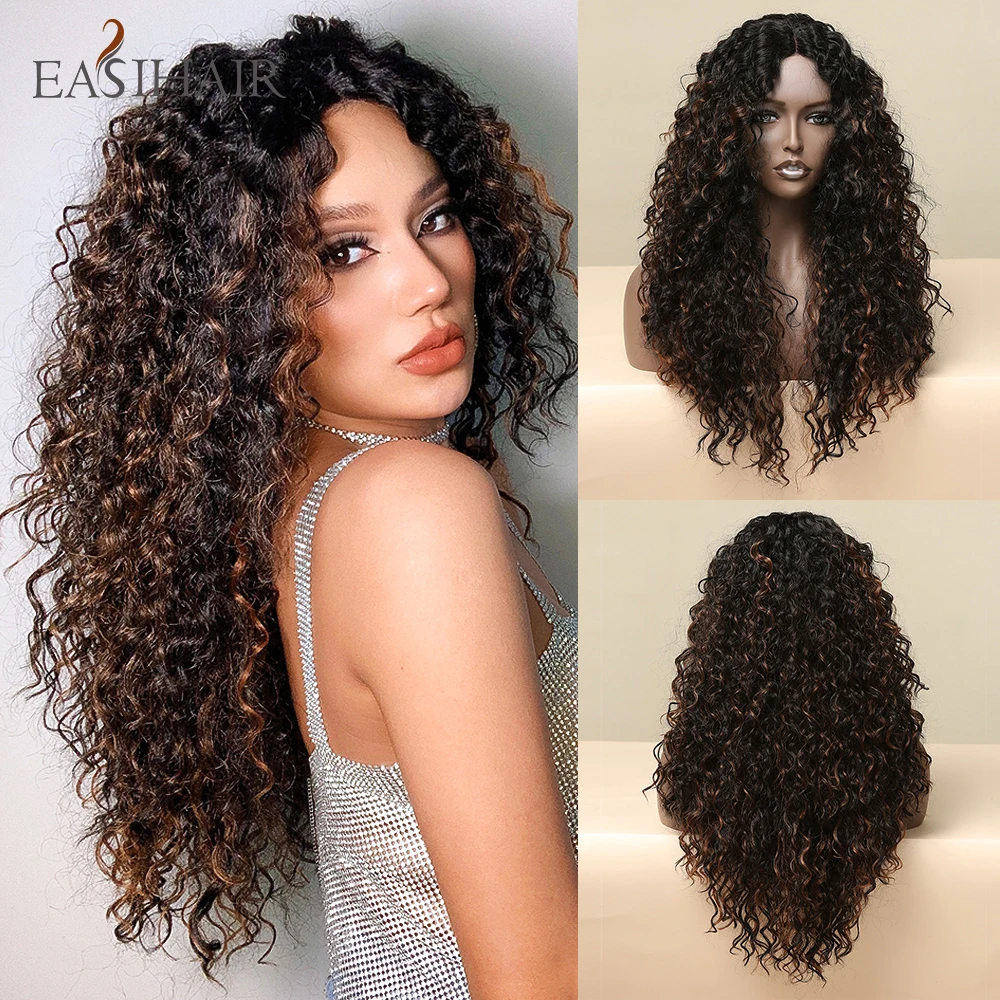 EASIHAIR длинный кудрявый фронтальный парик шнурка черный смешанный коричневый синтетический прозрачный парик фронта шнурка для черных женщин бразильские парики