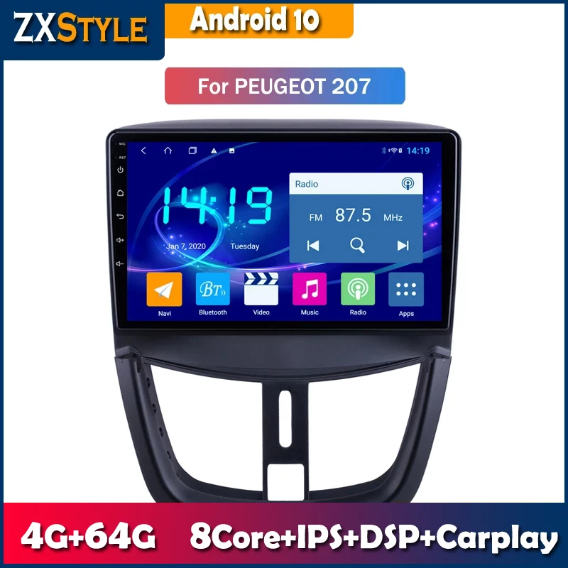 9-дюймовый Android 10 GPS-навигатор для Peugeot 206 + Plus 207 2008-2014, радио, DVD, мультимедийный плеер