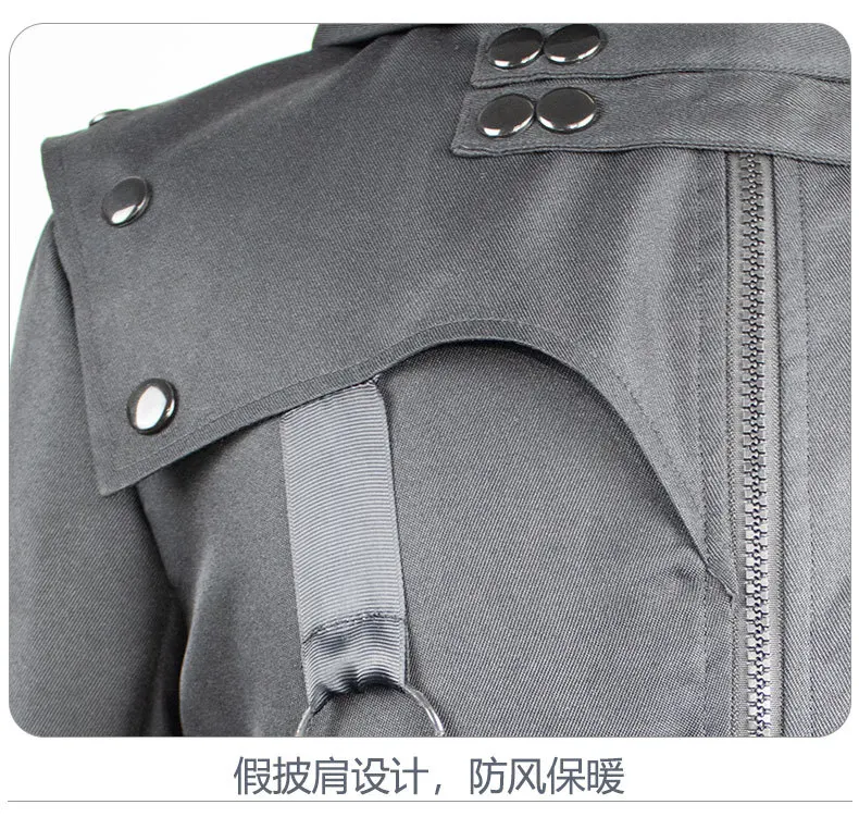 Мужское пальто униформа в стиле стимпанк с воротником-стойкой, одно...